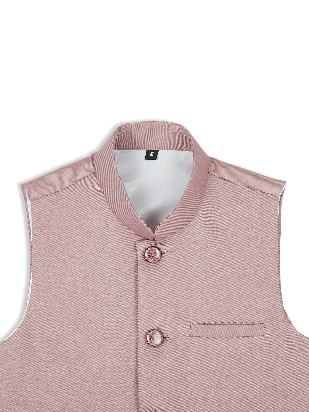 This soft peach Nehru jacket combines style and comfort for young gentlemen. With a classic mandarin collar and tailored fit, it’s perfect for festive occasions and weddings. The gentle peach hue adds a vibrant touch, easily pairing with various kurtas or trousers. A charming choice for any celebration, this jacket ensures your little one stands out with elegance.