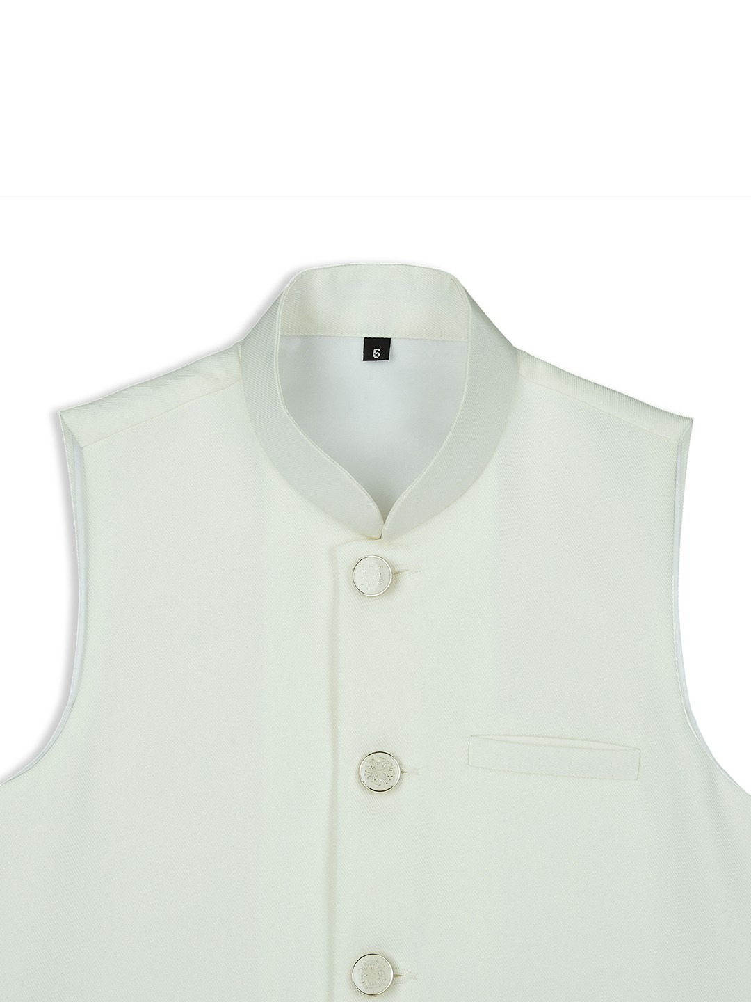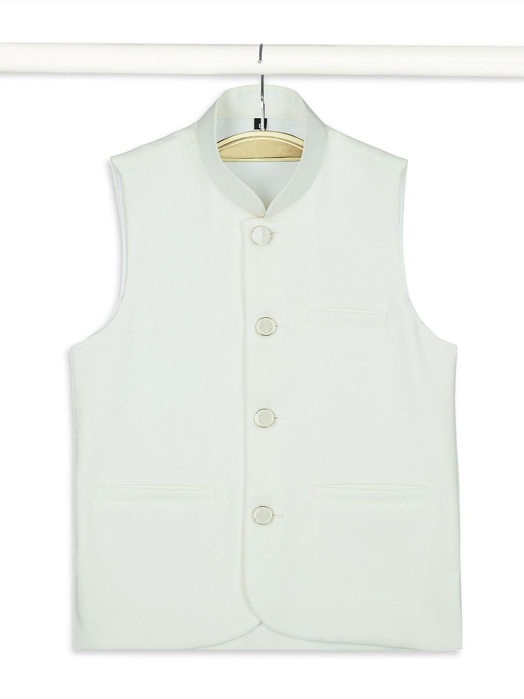 This off-white Nehru jacket offers timeless elegance and versatility. With a classic mandarin collar and tailored fit, it's ideal for formal occasions, weddings, and festive events. The neutral color pairs easily with various kurtas or trousers, making it a must-have for any young gentleman's wardrobe. Perfect for stylish comfort at every celebration.